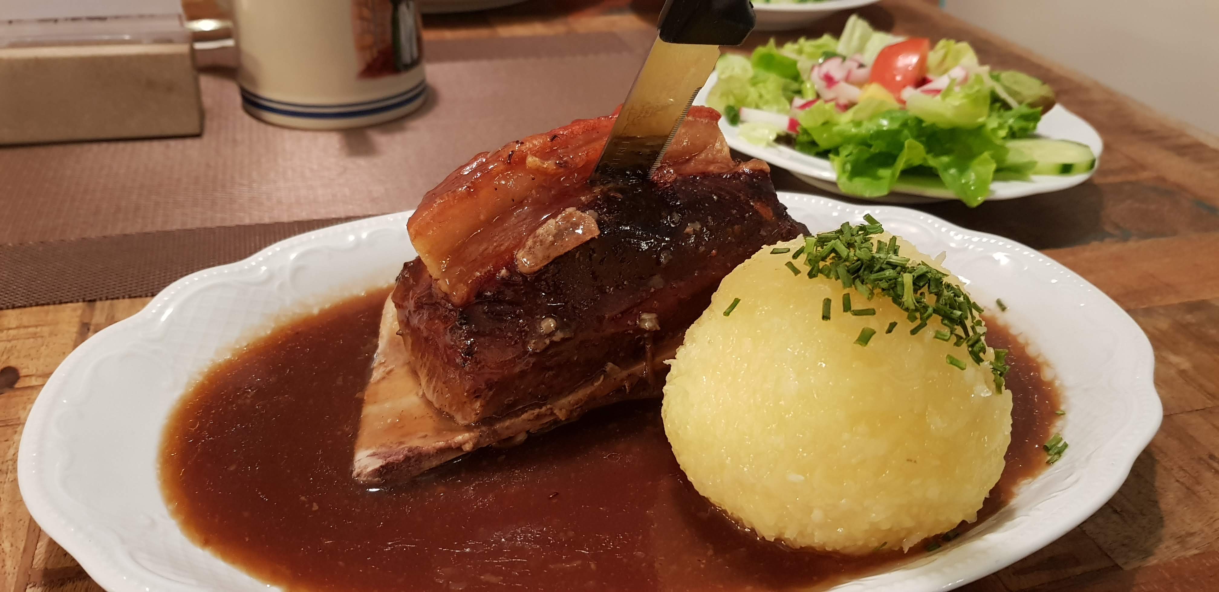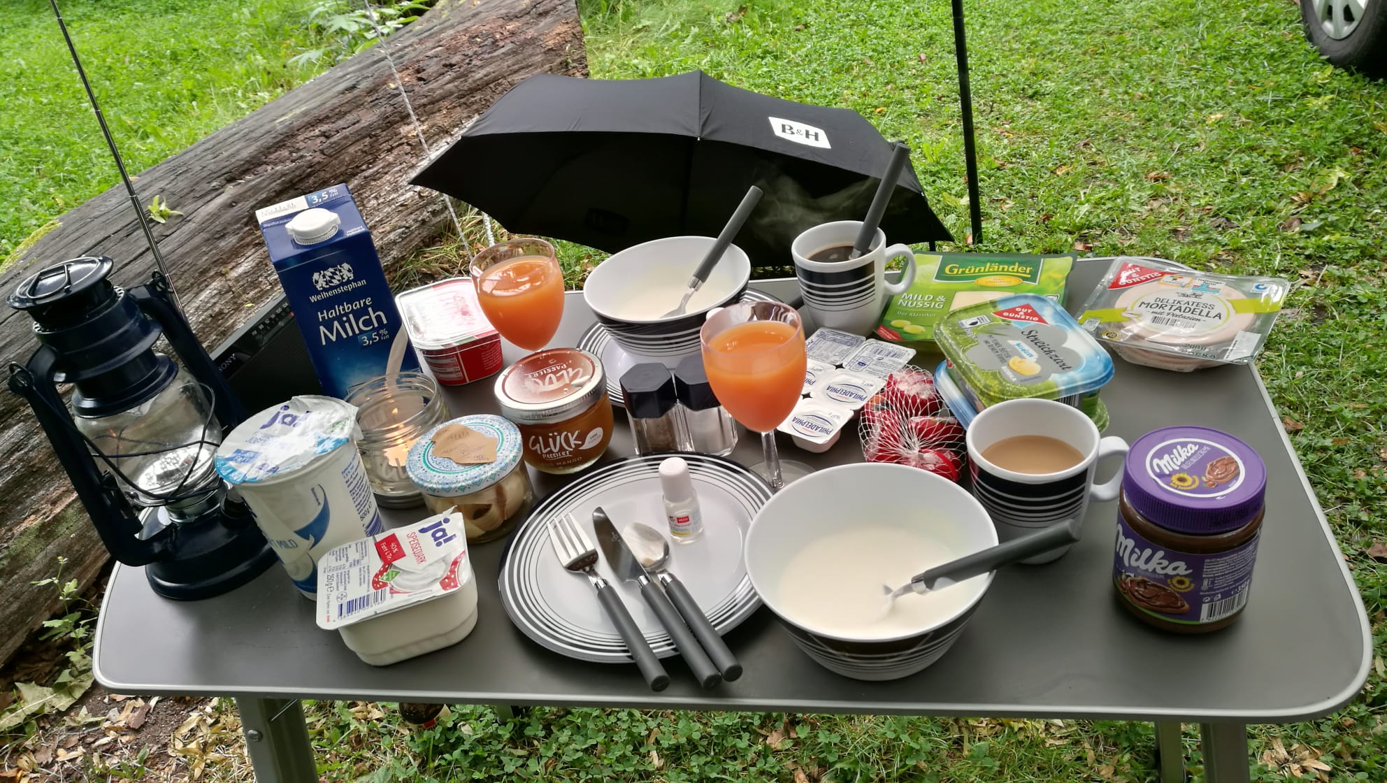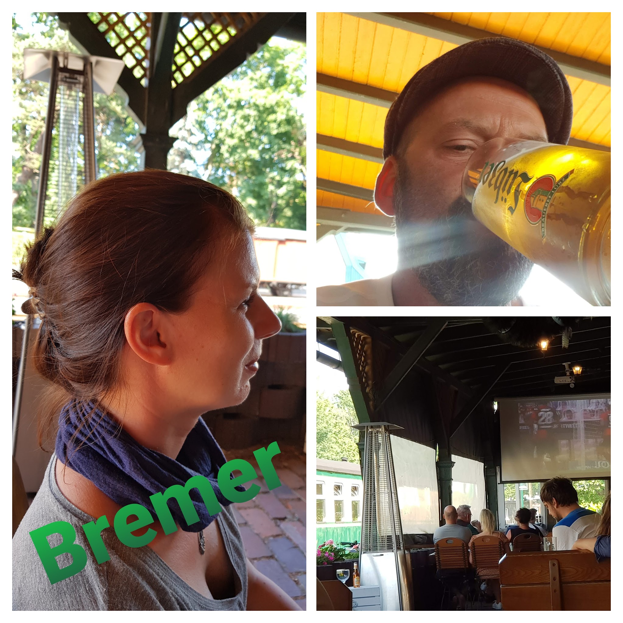 Jeder gute Urlaub von uns beginnt schon fast traditionell mit einem Frühstück in der Schrippenbude. Wobei die vorangestellte Bezeichnung "Schlemmer-" wie immer etwas hochgegriffen erschien, konnten wir dennoch gut gestärkt gegen halb zehn die Fahrt gen Nürnberg antreten. Mit dem gut gefüllten Caddy ging es über Osnabrück, Bielefeld und Paderborn weiter Richtung Süden. Am Rasthof Hasselberg entschieden wir uns für eine kurze Mittagspause mit Currywurst, Pommes Mayo und Cola. Um 17 Uhr empfing uns dann das Frankenland im Nieselregen. Der Knaus Campingpark, der unser Ziel sein sollte liegt klein und fein direkt am Stadion des 1. FC (der am Abend vor heimischer Kulisse noch siegreich gegen den KSC spielte) und in der Nähe des ehemaligen Reichsparteitaggeländes. Die Handgriffe zum Aufbau des Equipments waren zum Glück noch vom letzten Jahr vertraut und so konnten wir recht schnell Quartier beziehen und ein erstes kleines Bierchen genießen. Anschließend ging es zum Essen in das kleine Restaurant direkt am Campingplatz. Und was sollen wir sagen - es schmeckte hervorragend! Schäufele und Käsespätzle waren richtig lecker. Das eigentliche Highlight war jedoch die Pfannkuchensuppe vorweg. Dafür gab es ein Kompliment an die Küche und einen kleinen Plausch mit der bereits 71jährigen sehr sympathischen Köchin.