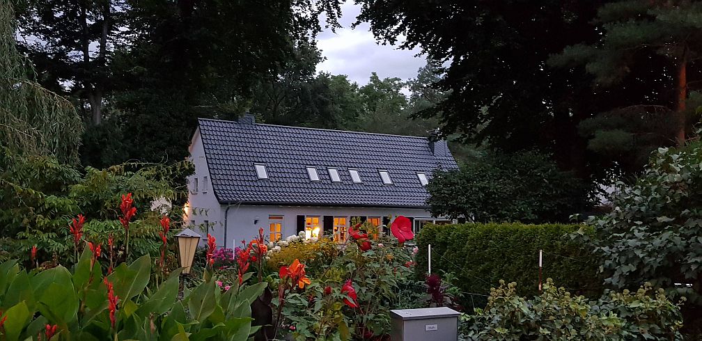 Dort angekommen stellten wir mit Freude fest, dass die Cafeteria noch geöffnet hatte. Also gab es für Tina endlich noch ein Stück Geburtstagsmarmorkuchen und einen Gin-Tonic im Hof des Hauses. Nun wurde es aber doch zu dunkel und kühl, so dass wir für den ersten Tag die Segel strichen und mit dem Rad den Rückweg ins Hotel antraten.
