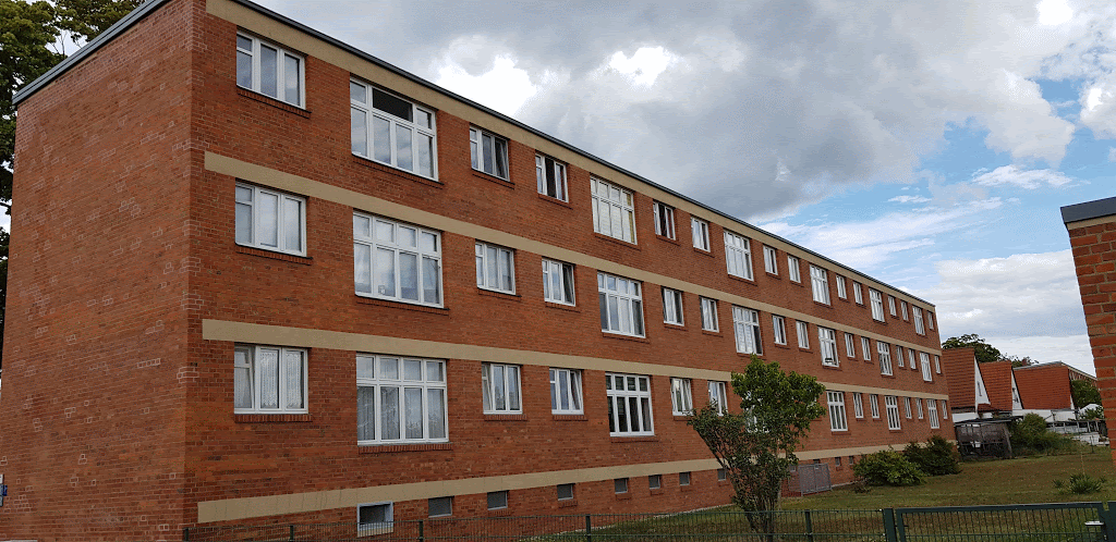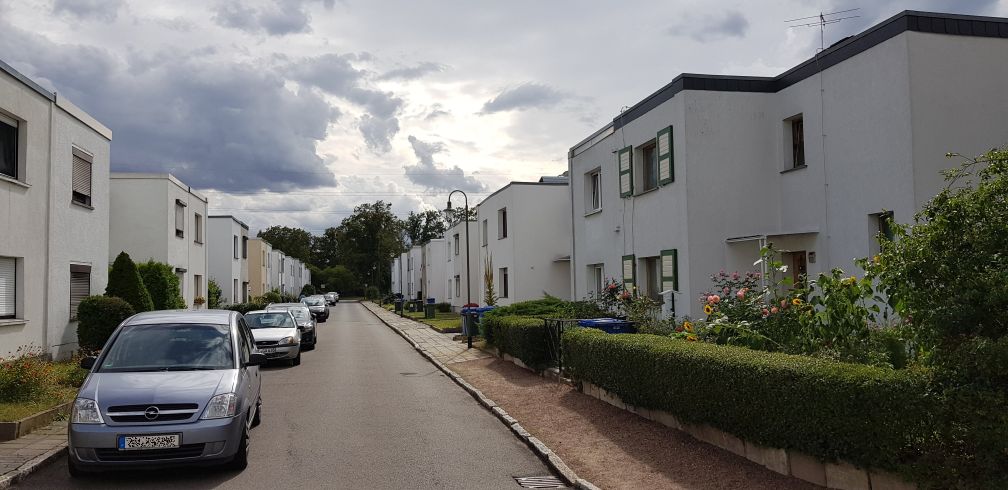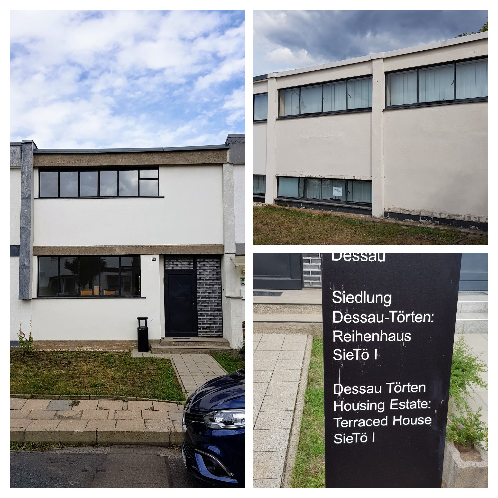 Im Anschluss an die Tour gönnten wir uns dann zunächst einen leckeren Milchshake im nächsten Eiscafé und beschlossen, im Anschluss mit der Straßenbahn (zu Erics großer Freude :) ) in die Bauhaus-Siedlung Törten zu fahren. Sehr sehenswert. Dort finden sich in verschiedenen Straßenzügen die Prototypen des Bauhaus-Sieldungsbaus, darunter die berühmten Laubenganghäuser. Das ganze Viertel gilt inzwischen ebenfalls als UNESCO-Welterbe.