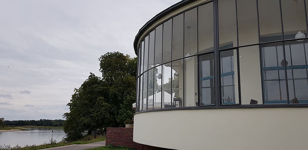 Zum Abschluss des Dessau-Wochenendes entschieden wir uns, noch in das Restaurant "Kornhaus" zu fahren. Ebenfalls ein schönes Bauhausgebäude direkt am Elberadweg gelegen und heute ein beliebtes Ausflugslokal. Nach einem kleinen Mittagsimbiss dort wurde es langsam Zeit, den Heimweg anzutreten. Auf dem Weg zur Autobahn machten wir noch einen ganz fixen Abstecher zum historischen Dessauer "Arbeitsamt", auch ein Gropius-Gebäude der 20er Jahre. Nun aber ab "on the Road" und zurück nach Hause.