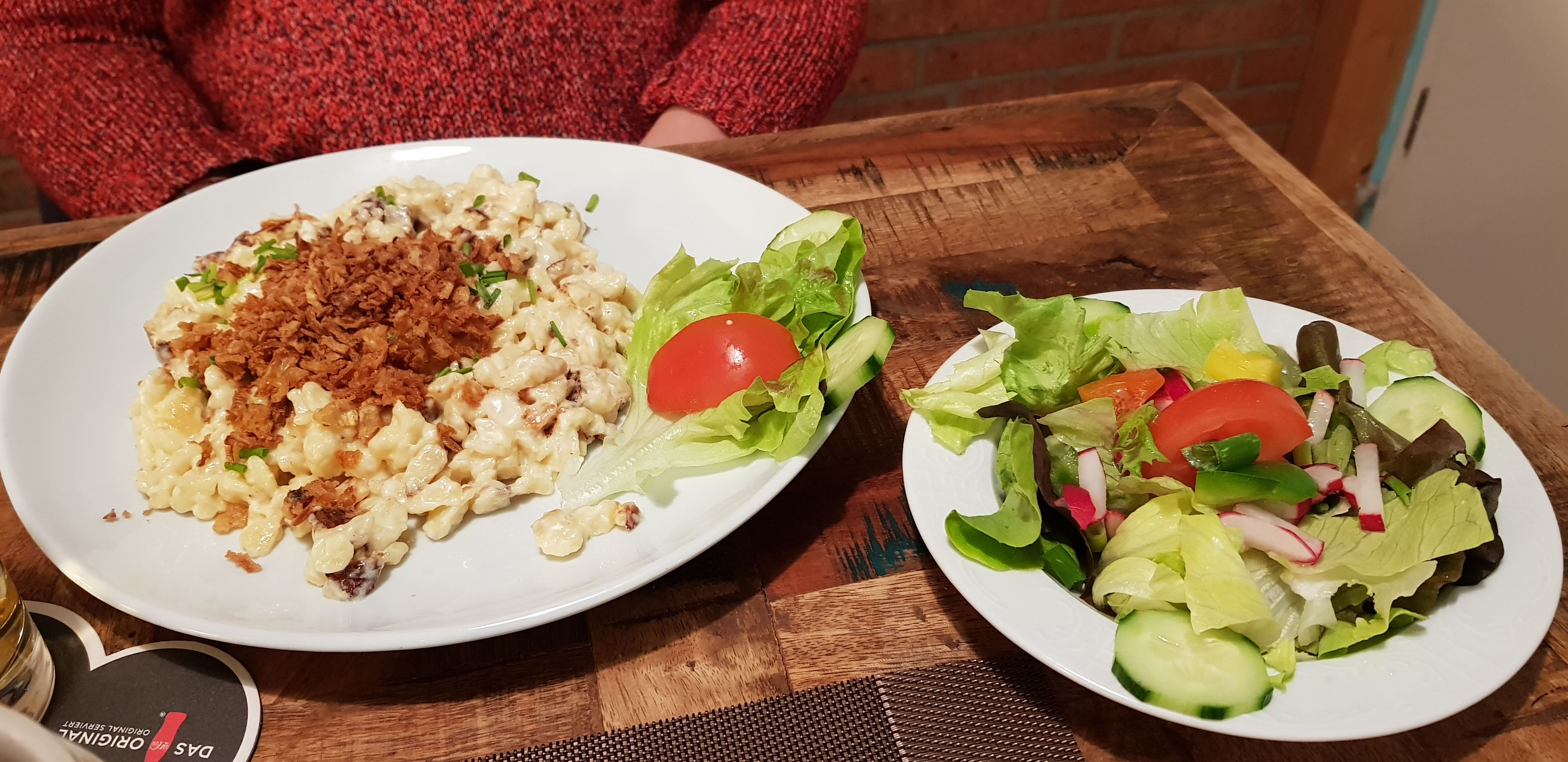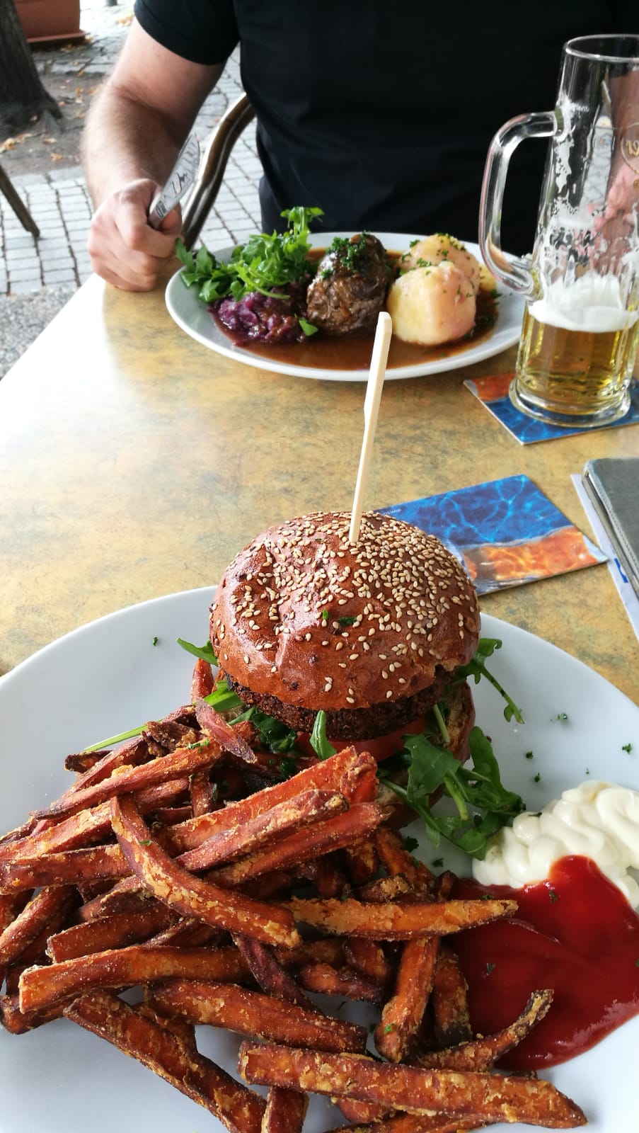 Im Anschluss an diesen kleinen Ausflug suchten wir noch einmal das bewerte Restaurant vom Vortag auf. Dieses Mal gab es Rouladen und einen Veggieburger. Eric war gegen Abend dann doch ein bisschen zu kaputt von den Eindrücken des Tages und zu müde, heute noch weiteren Input aufzunehmen und entschied sich daher, schon mal ins Hotel vorzufahren. Tina blieb nebst Fahrrad noch ein wenig im Stadtzentrum und besuchte das Bauhaus-Gebäude noch einmal bei Tageslicht um schöne Fotos zu machen. Danach ging es auch für sie zurück ins Hotel.