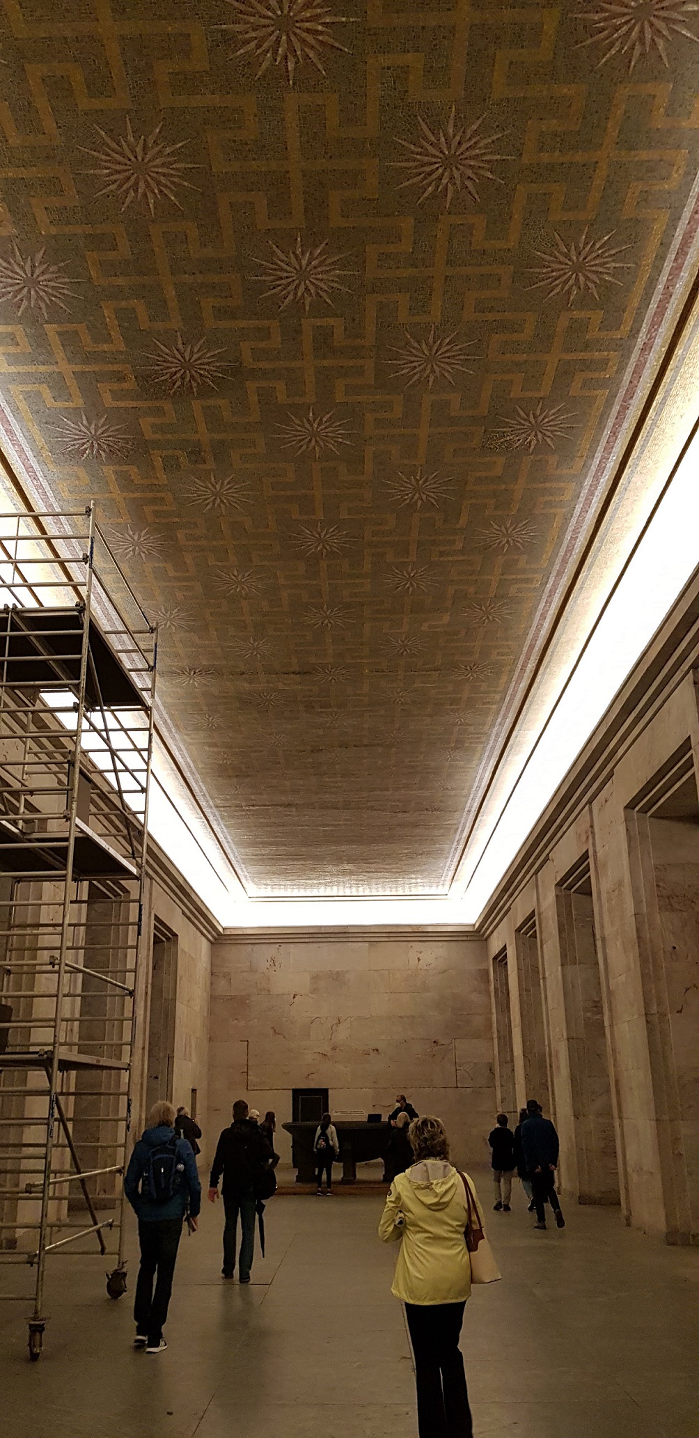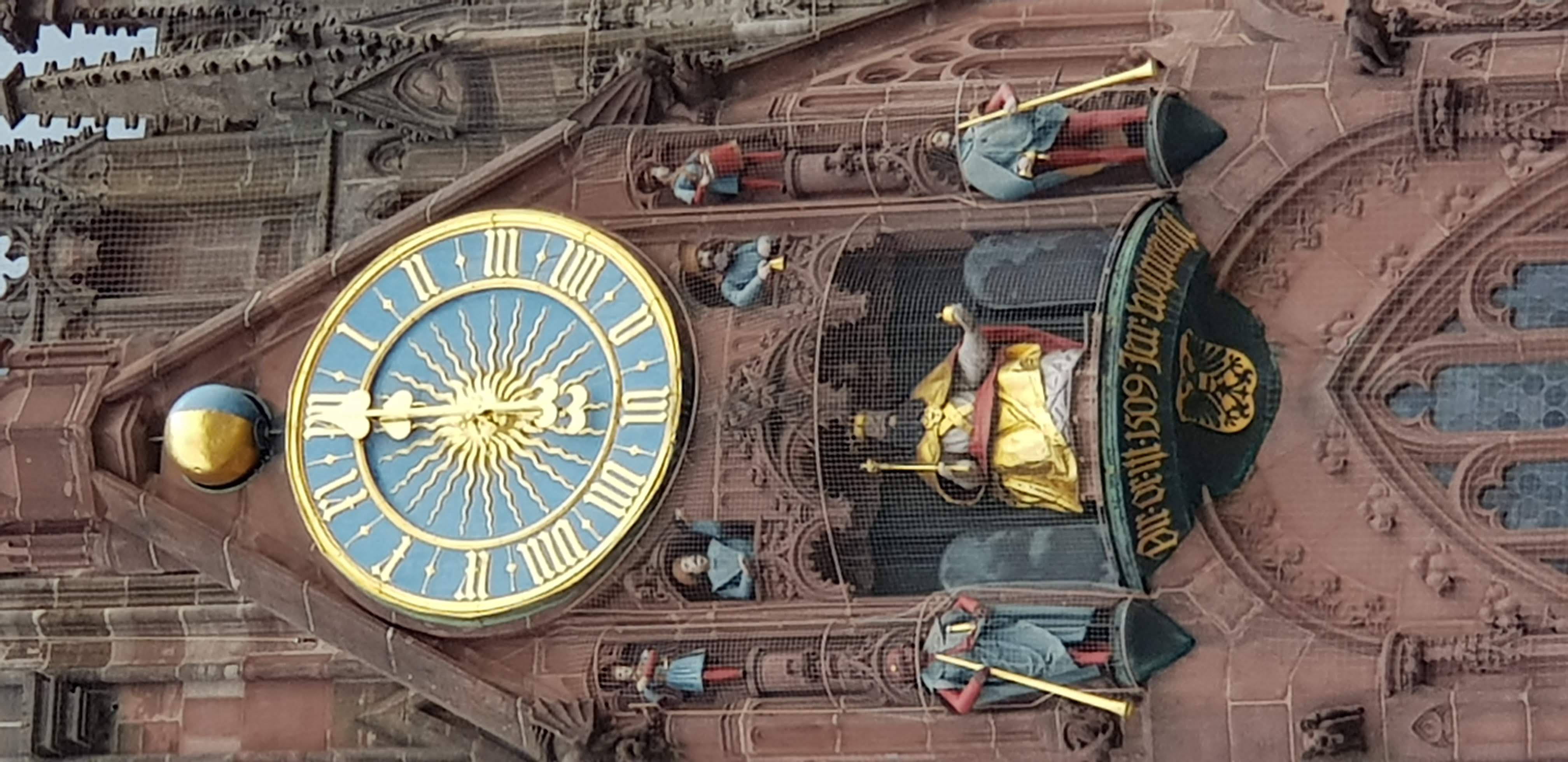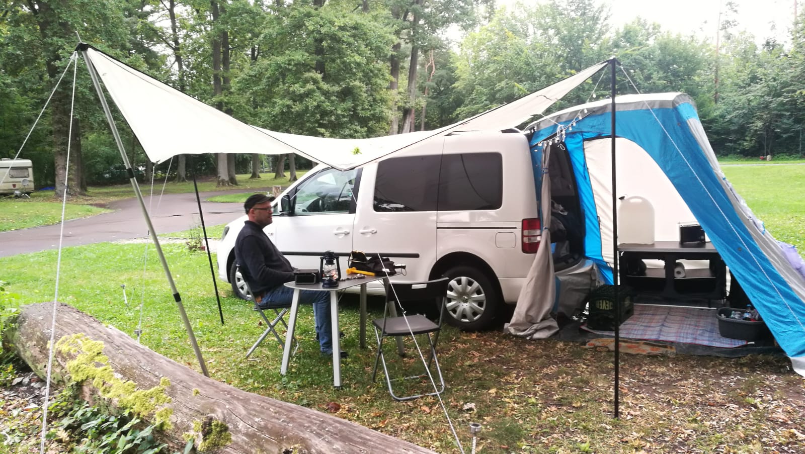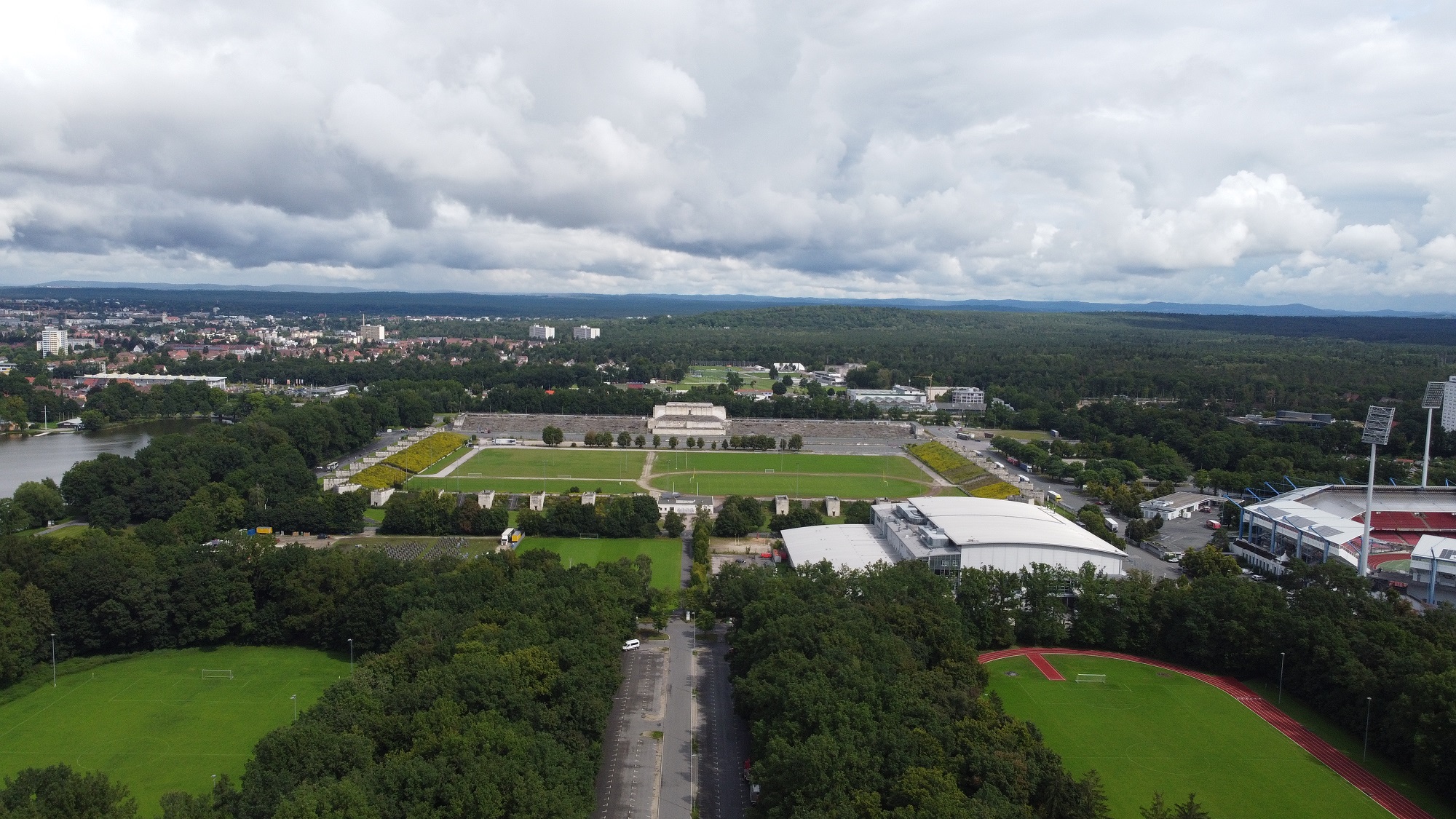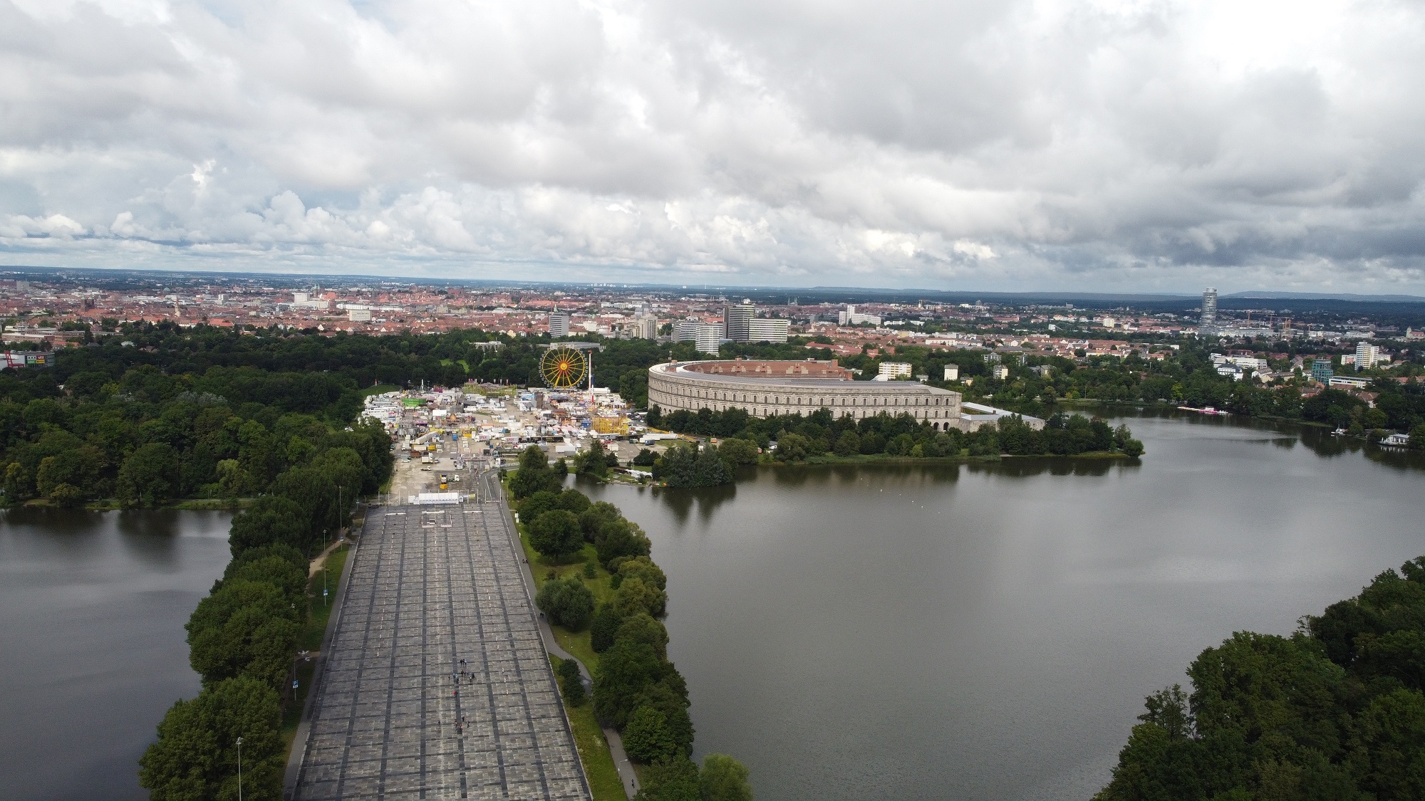 Dritter Tag in Nürnberg. Die Nacht war erneut ziemlich regnerisch, doch der Sonntagmorgen begrüßte uns zum Glück vorerst trocken. Auch heute gab es zunächst ein Camper Frühstück unterm Tarp. Anschließend sollte es nochmal in die Altstadt gehen. Dieses Mal musste jedoch die U-Bahn herhalten. Tinas Fahrrad Akku streikt weiterhin. Pünktlich gegen 12 Uhr erreichten wir wieder den Hauptmarkt und konnten dort am Mittag noch den berühmten Männchenlauf ansehen. Anschließend wurden noch ein paar Souvenirs gekauft (zu unserem Leidwesen hatte der schöne Lebkuchenladen vom Vortag leider heute geschlossen) und schon war es an der Zeit, den Rückweg zum Dutzendteich anzutreten. Denn um 14 Uhr wartete dort eine Führung über das ehemalige Reichsparteitagsgelände auf uns. Leichter gesagt als getan. Nach viel ÖPNV Hin und Her erreichten wir schließlich im kurz vor knapp unser Ziel und die Tour konnte starten. Innerhalb von zwei Stunden besuchten wir die Kongresshalle, die Grosse Straße, Areal des Deutschen Stadions und natürlich das Zeppelinfeld mit Tribüne und Goldenem Saal. Im Anschluss an die Tour begann es leider prompt wieder zu regnen an. Daher steuerten wir gleich die nächstgelegene Gaststätte an und stärkten uns mit Fränkischer Küche, Bier und Dessert (die Mittagspause mussten wir zuvor aus Zeitgründen ausfallen lassen und der Hunger war entsprechend gross). Nach dem Essen schüttete es jedoch noch mehr. Doch es nützte nichts. Der Rückweg zum Campingplatz musste leider zu Fuß zurückgelegt werden. Am frühen Abend erreichten wir wieder den Caddy, legten unsere Sachen erstmal trocken und kuschelten uns mit einem heißen Tee ins Bett, während es draußen munter weiter plätscherte.