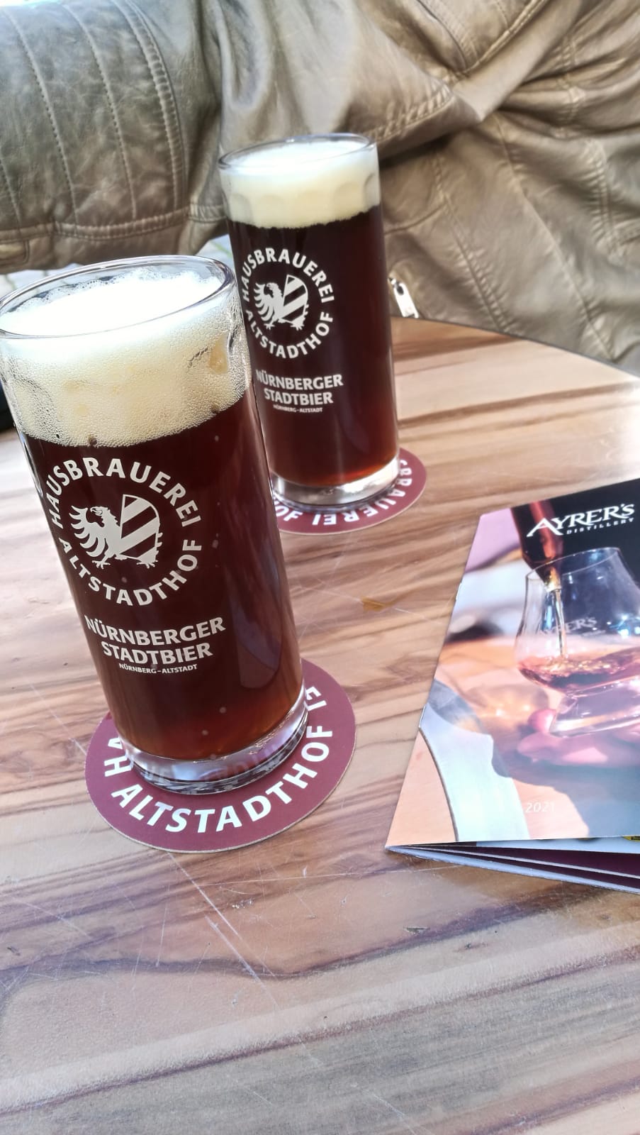 Nach einer leider sehr verregneten und kalten Nacht zeigt sich zur Feier des Tages der Morgen nun aber zum Glück freundlich. Einem leckeren Camping-Frühstück unterm Tarp steht also nichts im Wege. Frisch gestärkt startet der Vormittag nun erstmal mit einer provisorischen Fahrradreparatur. Es klappt - der Drahtesel ist einigermaßen wieder flott und so können wir gegen Mittag den Weg in die Altstadt antreten. Wir radeln ca. 7 km durch Parks und Grünanlagen und erreichen dann den Hauptmarkt. Von hier aus starten wir unseren Bummel durchs Zentrum. Auf dem Weg gibt's natürlich erstmal eine kleine Stärkung in Form eines Coffee-und-Lebkuchen-to-go. Sehr lecker. Es schmeckt schon ein bisschen nach Weihnachten, wir nehmen Sonntag aber sicher noch eine Packung mit nach Hause. Auch eine Rostbratwurst darf zwischendurch nicht fehlen. Unser Weg führt uns natürlich auch noch hoch zur berühmten Kaiserburg, von wo aus man einen tollen Panoramablick über die ganze Stadt hat. Für den Nachmittag hatten wir uns schon im Vorfeld eine Stadtführung gebucht. Ab dem Treffpunkt bei der Altstadthofbrauerei nahm uns unsere Gästeführerin Marianna zunächst für eine Stunde mit in die historischen Felsenkeller. Hier lagerten im Mittelalter abertausende Liter Nürnberger Bier bevor sie im Zweiten Weltkrieg dann zu Bunkern umgewandelt wurden. Alles sehr interessant. Die Führung ging dann noch eine weitere Stunde mit einem kleinen Rundgang durch die obere Altstadt weiter. U.a. vorbei am Dürer-Haus (ja, der mit dem Hasen) erreichten wir dann am frühen Abend wieder den Schönen Brunnen auf dem Hauptmarkt, wo die Räder brav auf uns gewartet hatten. Zur Stärkung noch ein, zwei Rotbier in der Altstadthofbrauerei bevor wir den Rückweg Richtung Campingplatz bzw. Gaststätte für das Abendessen antreten wollten. Schon nach wenigen Metern verabschiede sich jedoch wieder Tinas Fahrrad Akku, weswegen der Weg etwas beschwerlicher ausfiel, als geplant. Dennoch erreichten wir irgendwann das Restaurant Gutmann an Dutzendteich und später dann auch den Campingplatz. Kalt war es wieder geworden. Darum hieß es schnell in warme Klamotten und in den Schlafsack. Gute Nacht für heute und morgen mehr.